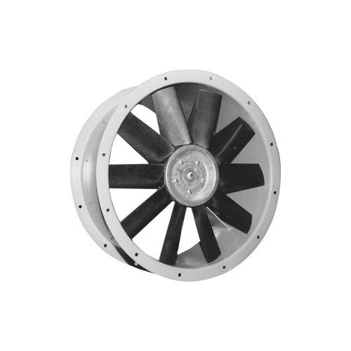 For sizes starting from 1400, the housing is spray-painted in RAL 7030. The fan wheel's hub is made of aluminum, and the blades are made of plastic. The blade angle is fixed and cannot be adjusted after installation. This fan can achieve a maximum airflow of 69 m³/s and a total pressure increase of up to 1,800 Pa.
