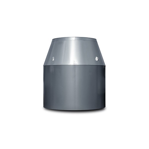The EKO-HJEL consists of a connection pipe, cone and casing. The connection pipe is designed to fit standard spiral ducts. The hood is manufactured with a slip connection up to size 315 and with a flange connection as standard for larger sizes. The EKO-HJEL is equipped with an internal water deflector that reduces the risk of water entering when the exhaust fan is not in operation.