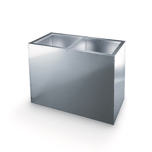 The roof inlet EKO-TD is designed for the installation of roof hoods and fans. As standard, EKO-TD features 50 mm insulation on the inside corresponding to fire class EI30. Alternatively, the roof inlet EKO-TD can be manufactured with 100 mm insulation corresponding to fire class EI60. Additionally, EKO-TD comes with an internal surface featuring perforated sheet steel as standard.