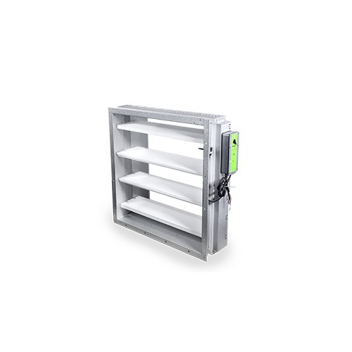 Brand-/brandgasspjäll EKO-RBG1-R är ett CE-godkänt flerbladsspjäll avsett för brandsektionering eller som skydd mot spridning av brand och brandgas i ventilationsanläggningar. Spjället är försett med fabriksmonterat reglerande elektriskt ställdon med fjäderåtergång, ändlägeskontakter och termisk sensor.