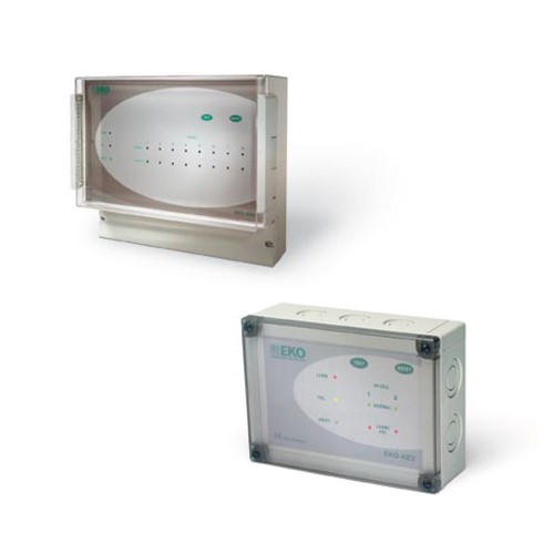 EKO-KE2, -KE4, -KE8 och -KE16 är avsett att användas för automatisk övervakning och funktionskontroll av upp till 2/4/8/16 (två spjäll/grupp) brand-/brandgasspjäll, brandgasspjäll eller tryckavlastningsspjäll med 24V spjällmotorer samt olika typer av rökdetektorer.