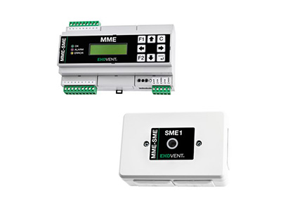 EKO-MME är en centralenhet som används för en central för spjällmoduler, EKO-SME. Till EKO-MME kan 100 EKO-SME anslutas. Med expansionsmodul R30 kan ytterligare 100 spjäll anslutas. EKO-MME kan hantera upp till två R30 expansionsenheter dvs totalt 400 spjäll. Kommunikation mellan EKO-MME och EKO-SME sker via en tretrådskabel (24VAC-GND-SIOX).