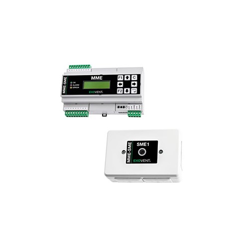 EKO-MME är en centralenhet som används för en central för spjällmoduler, EKO-SME. Till EKO-MME kan 100 EKO-SME anslutas. Med expansionsmodul R30 kan ytterligare 100 spjäll anslutas. EKO-MME kan hantera upp till två R30 expansionsenheter dvs totalt 400 spjäll. Kommunikation mellan EKO-MME och EKO-SME sker via en tretrådskabel (24VAC-GND-SIOX).