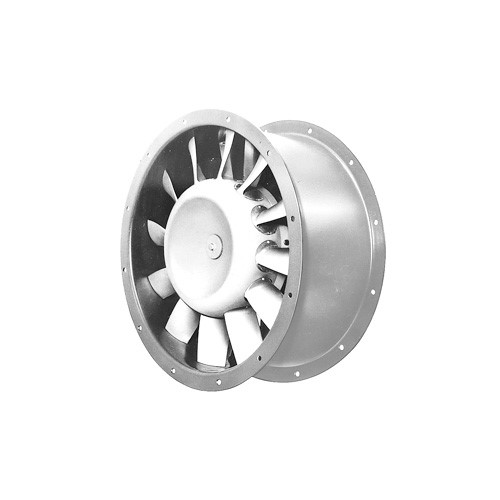 Fläkten hölje är tillverkat av stålplåt och är som standard pulverlackerad i RAL 7030. Från storlek 1400 är höljet sprutlackerat i RAL 7030. Fläkthjulet är utfört i silumingjutgods för att erhålla bättre korrosionsskydd. Luftflöde max 110 m3/s. Total tryckökning max 2 600 Pa.