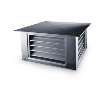 Takhuv EKO-HSR är avsedd att användas för ute- och avluft i komfort- och industrianläggningar. Huven består av fyra regnskyddade galler (EKO-YSR) med smådjurssäkert trådnät på insidan, skruvade mot hörn- och takprofilerna. Lamellerna är speciellt utformade för god vattenavrinning längs gallrets gavlar och ner över dropplisten. Taket sluttar något för god vattenavrinning och skjuter ut över huvens ytterkanter på alla sidor.
